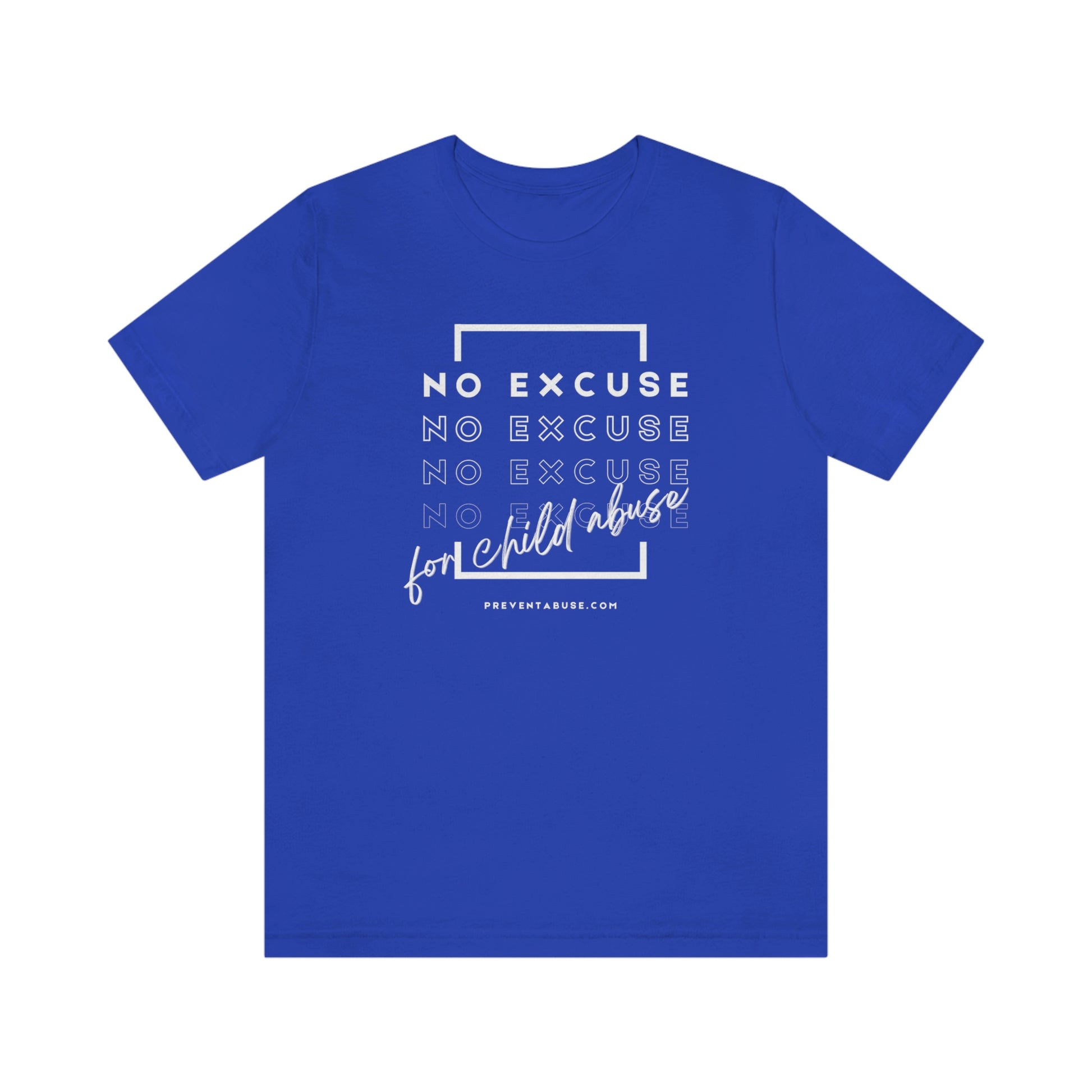The "No excuse for child abuse" t-shirt is a powerful statement that raises awareness for Child Abuse Prevention Month. Made with high-quality fabric, this t-shirt is both comfortable and durable. The front of the shirt features the bold and impactful message, "No excuse for child abuse" in large, clear letters that cannot be ignored.